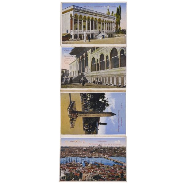 Albümde yer alan kartpostallar: 1) Boğaziçi´nden Beşiktaş kıyılarına bakış (Arkada Taşkışla görülmekte) 2) Tophane sırtlarından Boğaziçi ve Üsküdar´a bakış 3) Fatih Camii 4) Galata Köprüsü 5) Çinili Köşk 6) Yeni Cami (Eminönü) 7) Dikilitaş (Hipodrom) 8) Galata Kulesi´nden Haliç´e panoramik bakış 9) İstanbul Arkeoloji Müzesi 10) Boğaziçi´nden Beykoz kıyılarına bakış 11) Selimiye Kışlası 12) İstanbul Kara Surlarından bir kapı (Konum belirtilmemiş). *Kartpostallardan iki adedi bütünden ayrılmıştır. Ayrık kartpostallar: Beşiktaş kıyıları ve sur kapısı.