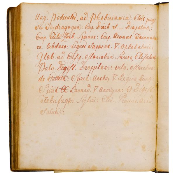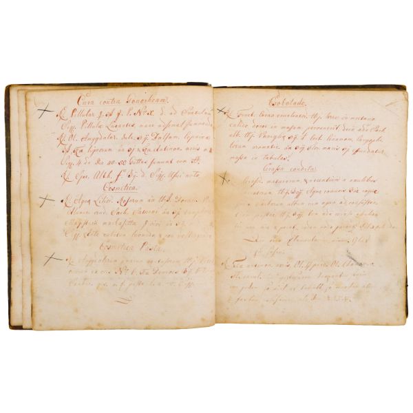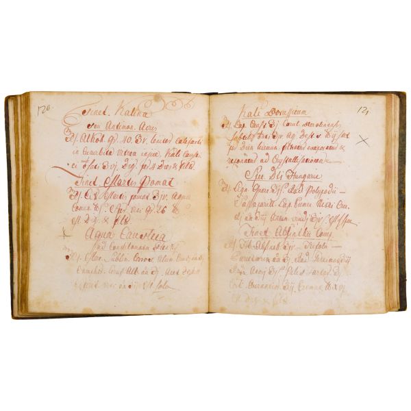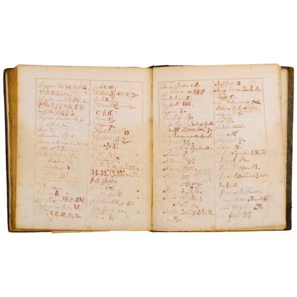 Simya formüllerinin ve ecza tarkiplerinin anlatıldığı Latince yazma defter.
