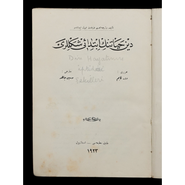 Fransız sosyolog Durkheim´ın ilkel dinler hakkında yazdığı bu önemli eseri din sosyolojisi konusunda başat bir eserdir. Servet-i Fünun dönemi önemli tenkitçilerinden H.Cahit Yalçın tarafından Türkçeye kazandırılan bu eser, Ziya Gökalp ve cumhuriyet ideolojisini derinden etkilemiştir.