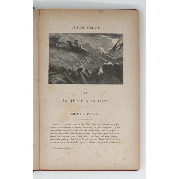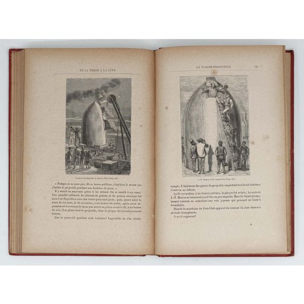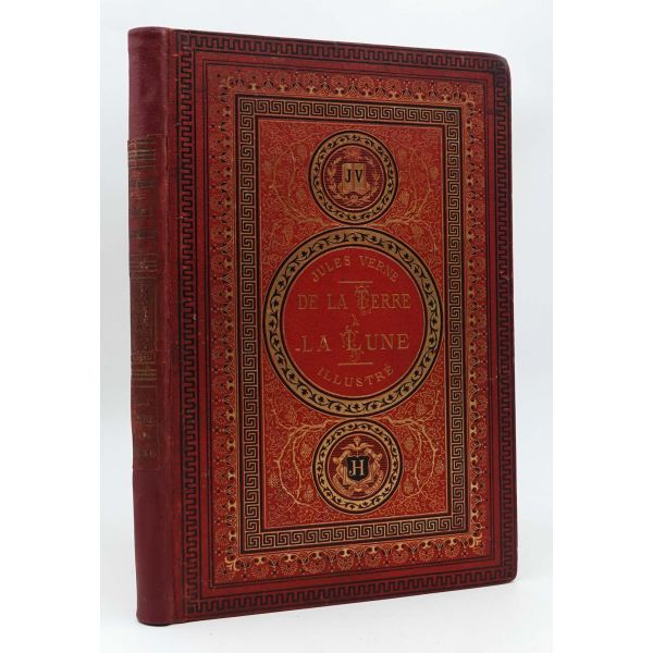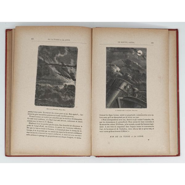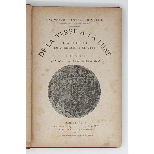 Türkçeye "Ay´a Yolculuk" adıyla çevrilen Jules Verne klasiğinin, siyah-beyaz gravürler eşliğinde Hetzel baskısı. Sayfa kenarları yaldızlı dönem cildinde... Kitabın ön iç kapağında "S.H. Weiss Librairie - Constantinople" yazılı etiket mevcuttur.