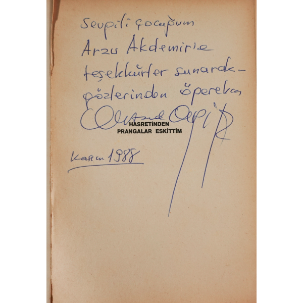 "Pek değerli, zarif ? Erenel hanımefendiye armağan." ithafıyla, Nazım Hikmet´ten Ahmet Kutsi Tecer´e, devrinin çok sayıda şair ve yazarının âşık olduğu, Türk edebiyatının öncü yazar ve şairlerinden olan Şükûfe Nihal tarafından 26 Haziran 1961 tarihinde imzalanmıştır.