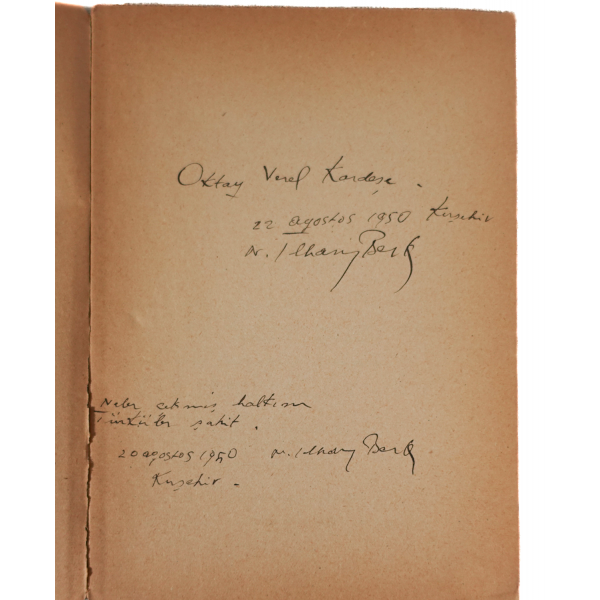 Türk şiirinin durmadan kendini yenileyen, en deneyci şairlerinden İlhan Berk´in, 1939-1947 yılları arasında kaleme aldığı şiirleri bir araya getirdiği ikinci şiir kitabı... İlk sayfasına İlhan Berk tarafından 20 Ağustos 1950 tarihinde "Neler çekmiş halkım türküler şahit." mısraları düşülen kitap, iki gün sonra "Oktay Verel Kardeşe." ithafıyla imzalanmıştır. *Bazı sayfaları sırttan ayrılmıştır.