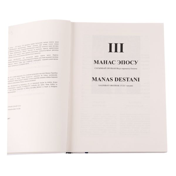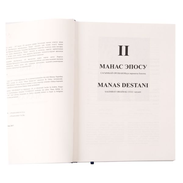 "Bu eser, 2017 yılında doğumunun 150. yıl dönümü kutlanmakta olan ünlü Manasçı Sagımbay OROZBAKOV yorumu ile yazılan ´Manas Destanı´nın tamamının ilk Türkçe tercümesidir..."