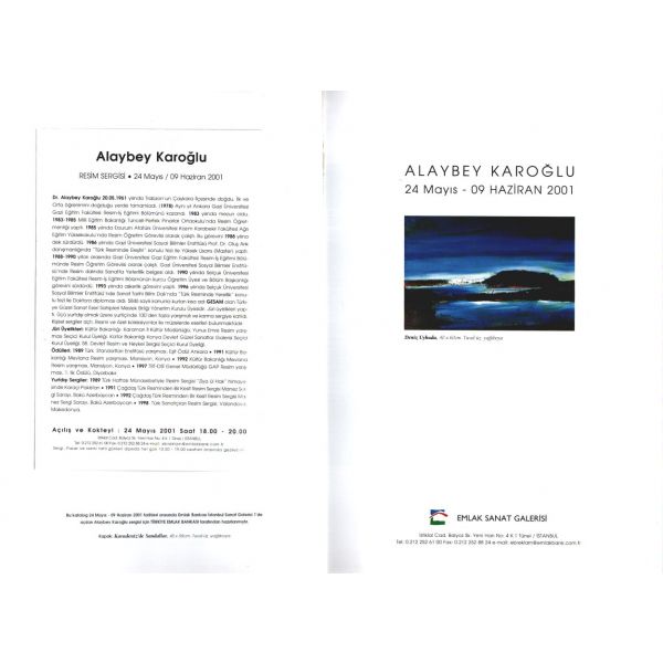Bu katalog 10-26 Mayıs 2001 tarihleri arasında İstanbul Emlak Sanat Galersinde açılan Alabey Karoğlu sergisi için Türkiye Emlak Bankası tarafından hazırlanmıştır.