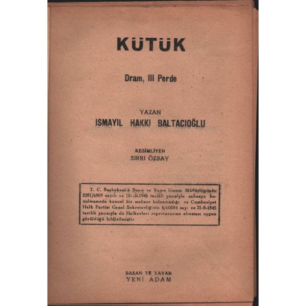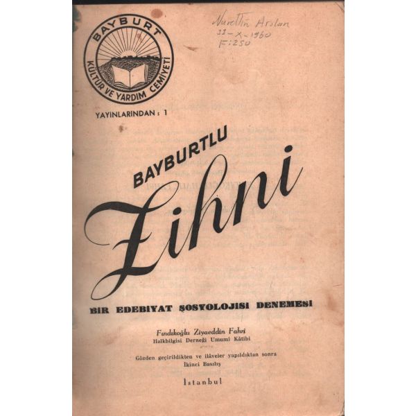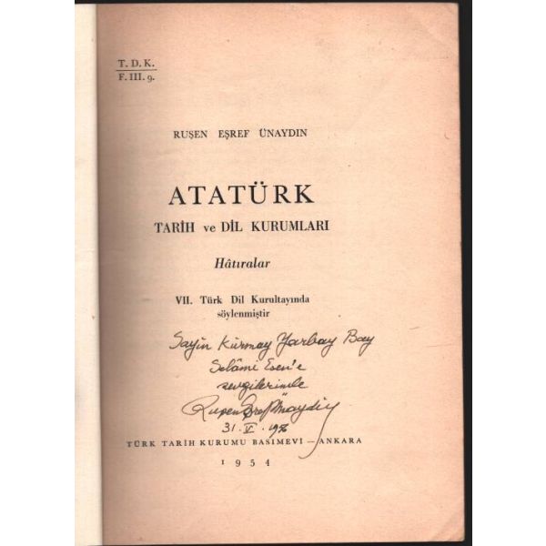 İthaf, "Sayın Kurmay Yarbay Bay Selâmi Esen'e sevgilerimle - Ruşen Eşref Ünaydın" şeklindedir.