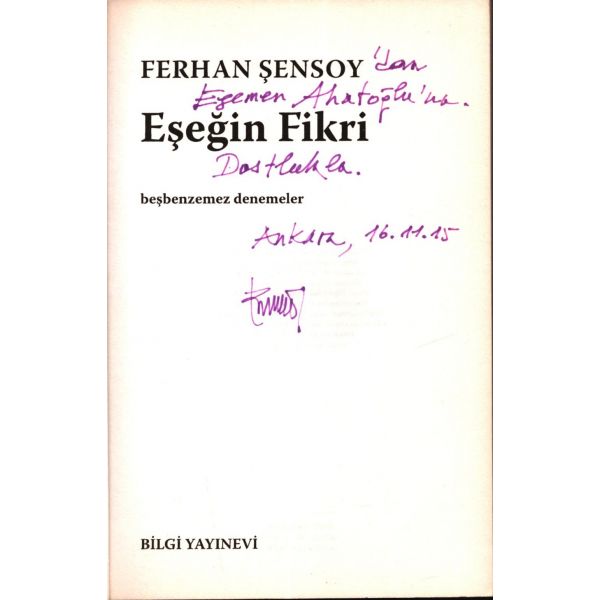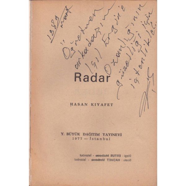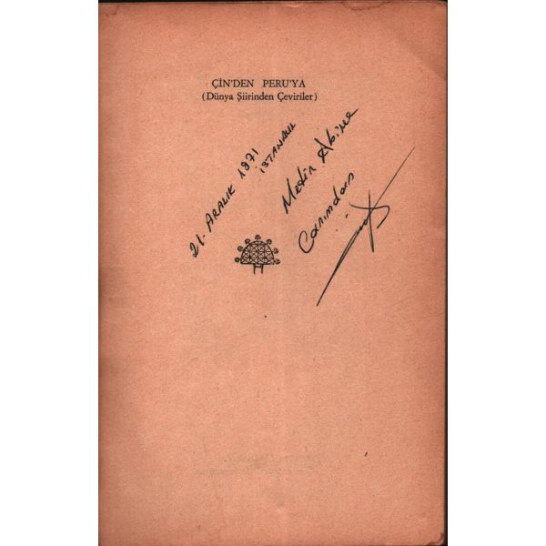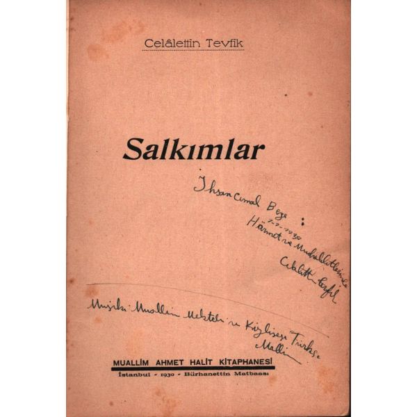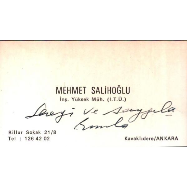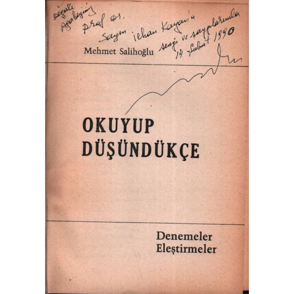 İthaf, "Değerli Ağabeyimiz Prof. Dr. Sayın İlhan Kayan´a sevgi ve saygılarımla. 14 Şubat 1990" şeklinde olup, kitap içerisinde Mehmet Salihoğlu´nun İlhan Kayan´a not yazdığı bir kartviziti de yer almaktadır.