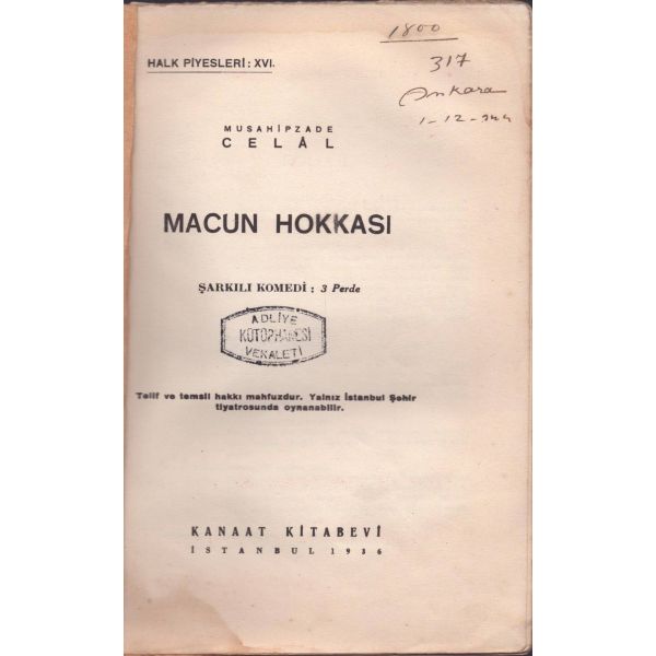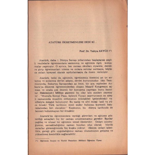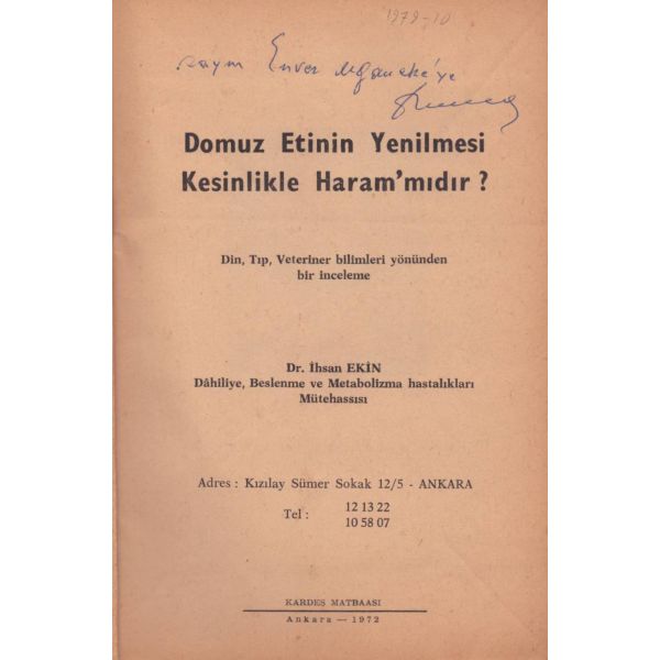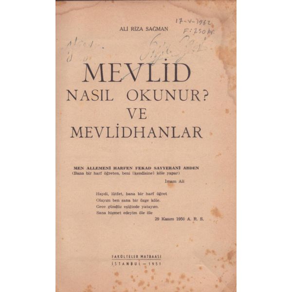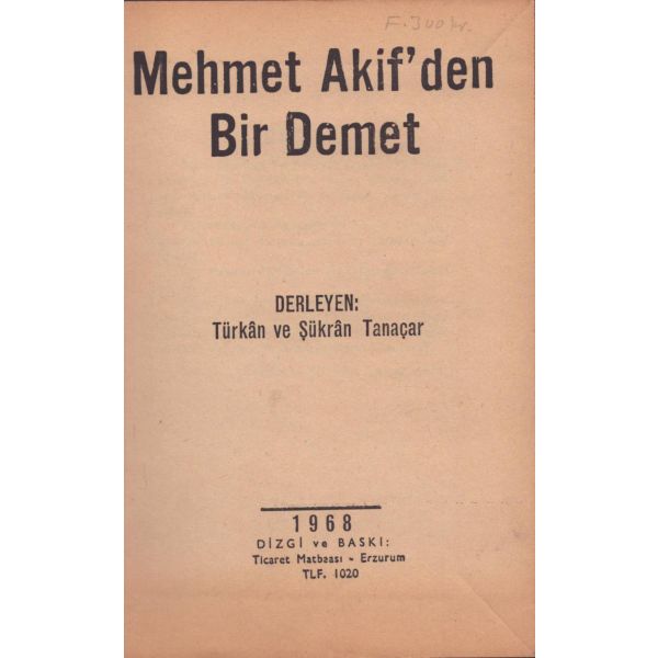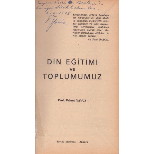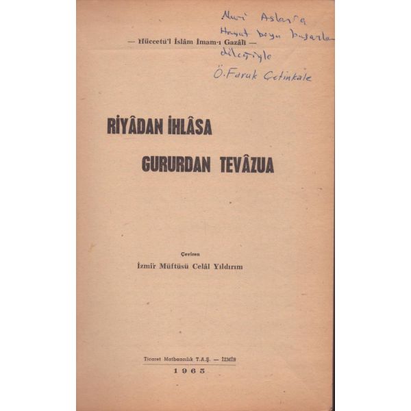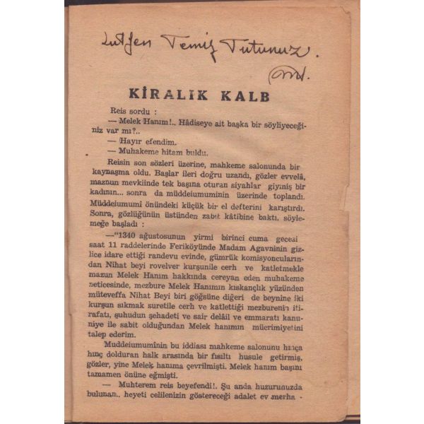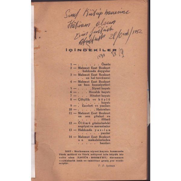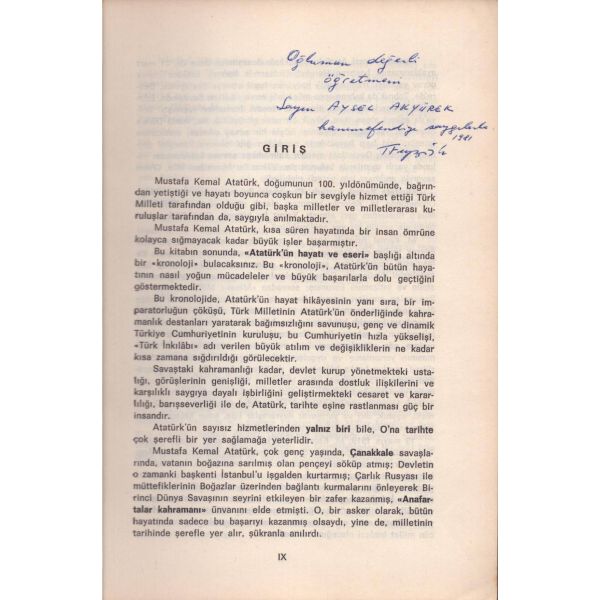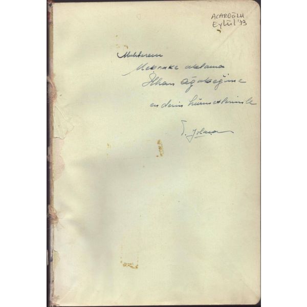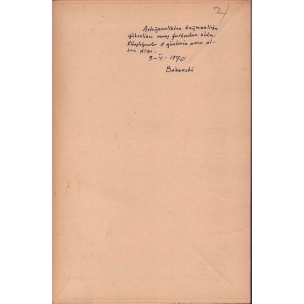 Kitabın ilk sayfasında "Asteğmenlikten teğmenliğe yükselince maaş farkından aldım. Kitaplığımda o günlerin anısı olsun diye. 5-V-1970 Babaeski" notu mevcuttur.