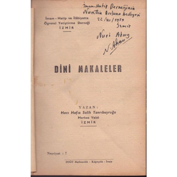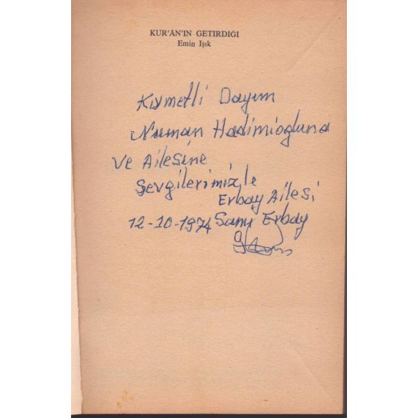 Ö. Faruk Çetinkale isimli biri tarafından Nuri [Nurettin] Aslan´a "Hayat boyu başarılar dileğiyle" armağan edilen kitabın içerisinde, Nuri Aslan´a hitaben kaleme alınmış bir mektup ve Nuri Aslan´ın Kemal Su ve arkadaşları ile gerçekleştirdiği İstanbul Arkeoloji Müzesi gezisinde çekilmiş, arka yüzü açıklamalı bir fotoğrafı mevcuttur.