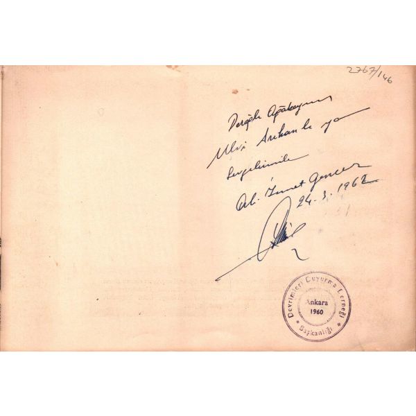 Kitabın ilk sayfasında Tanju Cılızoğlu´na ithaf ve imza mevcuttur.