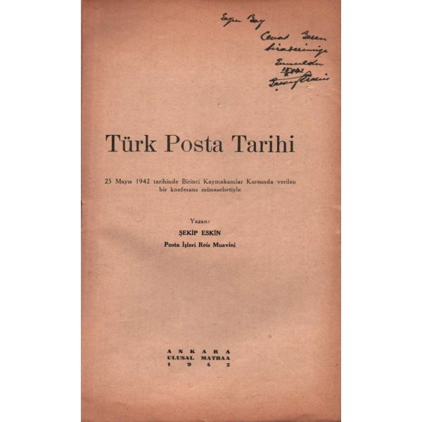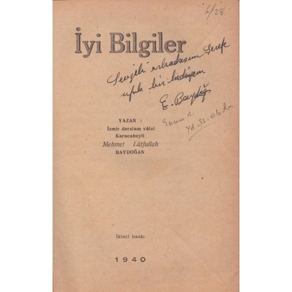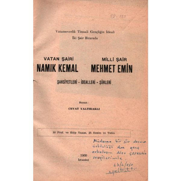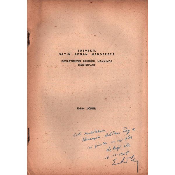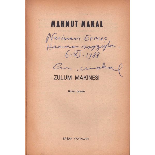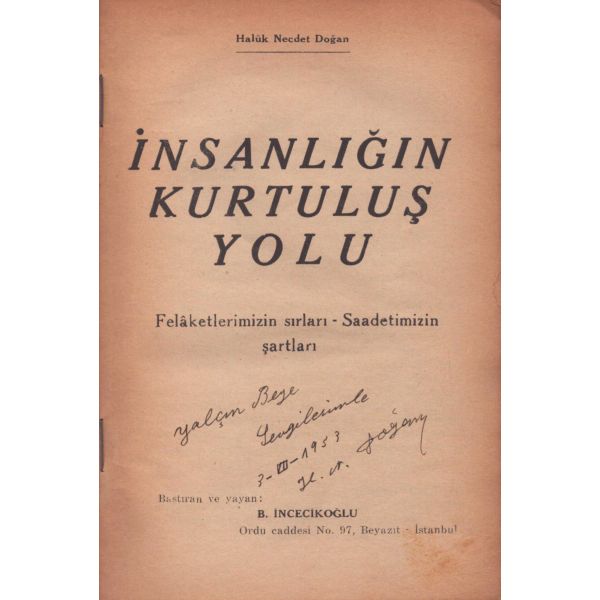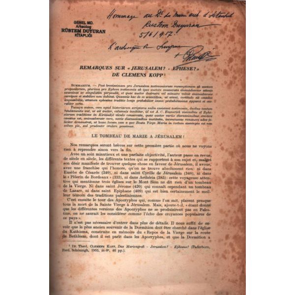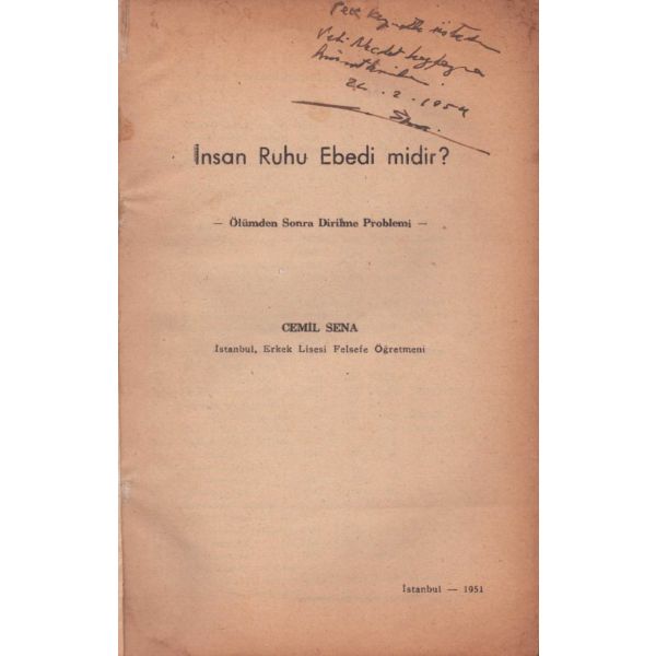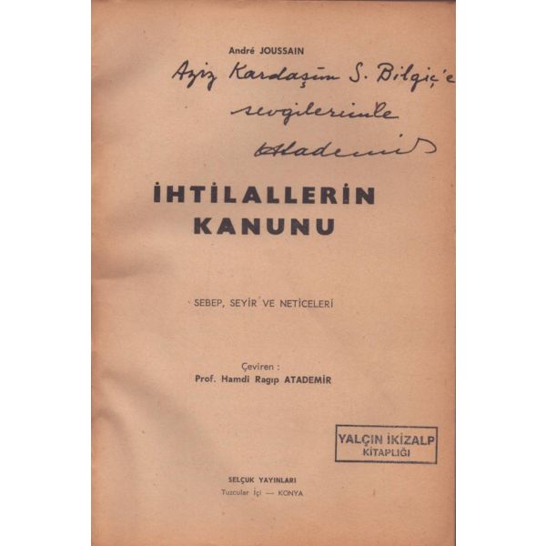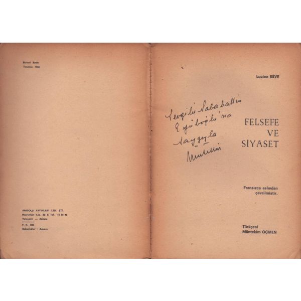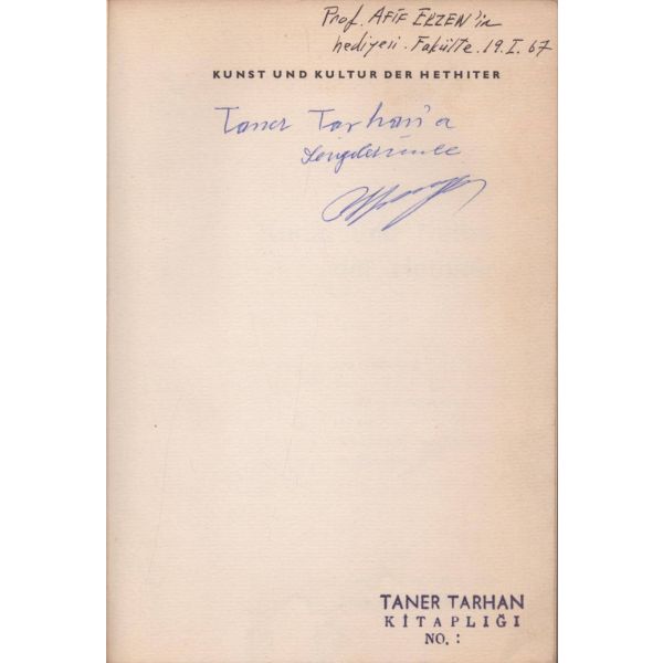 Kitap, Prof. Afif Erzen tarafından "Taner Tarhan´a sevgilerimle." ifadeleriyle ithaflanmış, Taner Tarhan tarafından da "Prof. Afif Erzen´in hediyesi. Fakülte. 19.I.67" notu düşülmüştür.