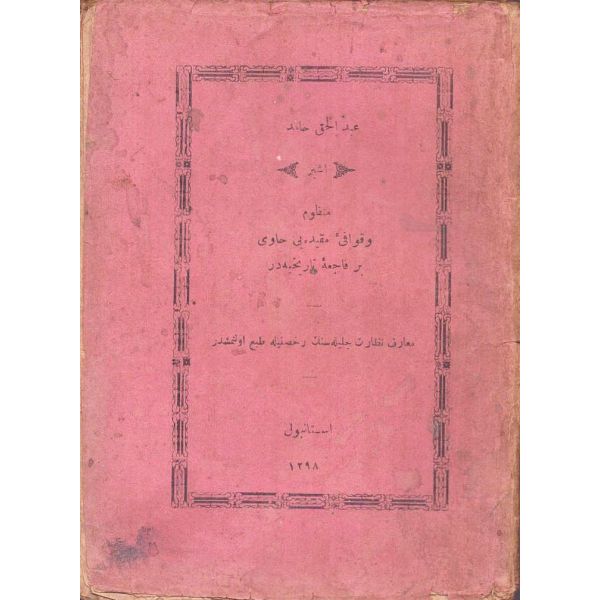 Kitap ortadan ayrılmış ve arka kapağı eksik haliyle.