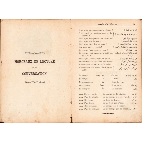 1- Metod Berliç'den Tedris-i Lisan-i Fransevi, M. D. Berlitz, çev., Orhan Selahaddin, Ahmet İhsan Matbaası, İstanbul, 1322, resimşi, 105 sayfa, ÖZEGE; 13334. 2- Mecmua - i Ef'al - i Fransevi , Mehmed Rüşdü, ikinci baskı, Mahmud Bey Matbaası, 1317, 124 sayfa, ÖZEGE; 12528. 14x20 cm