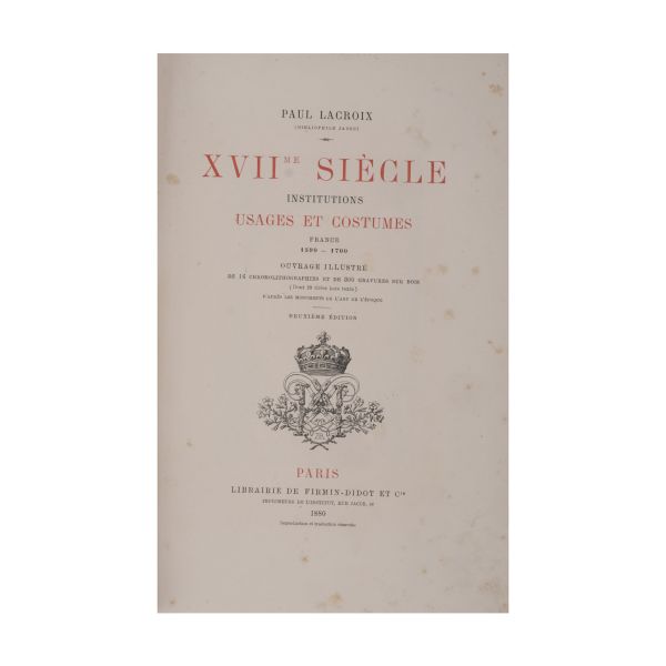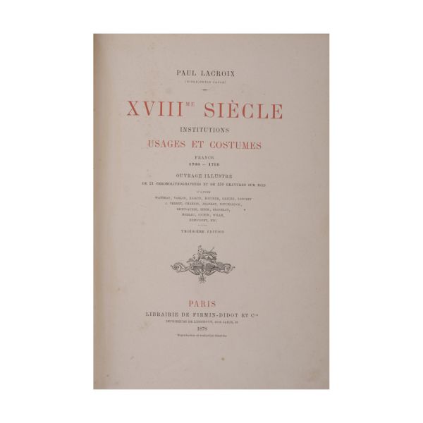 Kitapsever Jacob olarak tanınan Lacroix´nın Orta Çağlar ve Rönesans´a dair bol çizim ve gravürlü ünlü eseri. Eserler askerî ve dinî hayata, giyimlere, bilimlere ve sanata dairdir.