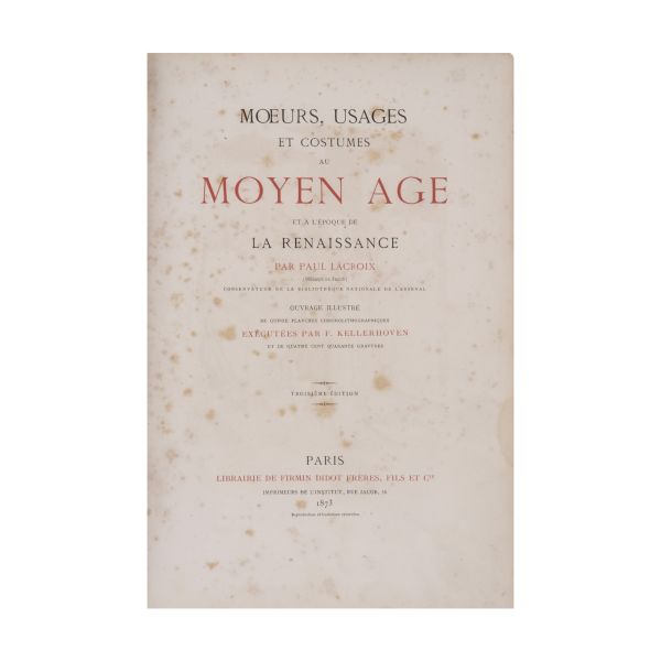 2- MOEURS, USAGES AU MOYEN AGE ET A L´EPOQUE DE LA RENAISSANCE, 1873.