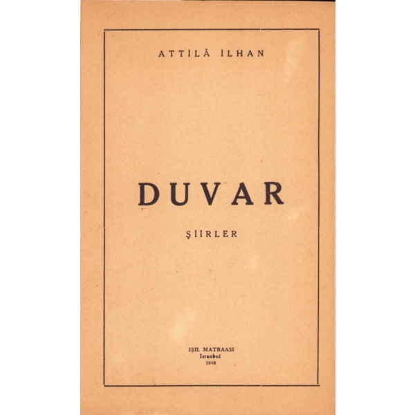 Duvar, Attila İlhan'ın özgürlük, eşitlik ve mutluluk ideali üzerine yazılmış toplumsal gerçekçi şiirlerini ihtiva etmektedir. "Benim için her şey alaladenin haricindedir/ Bütün dertlerimi unutabildiğim zaman/ Pırıl pırıl meydanlar gönlüme göredir/ Gönlüme göredir -arpa boyu ömrün- sevinci."