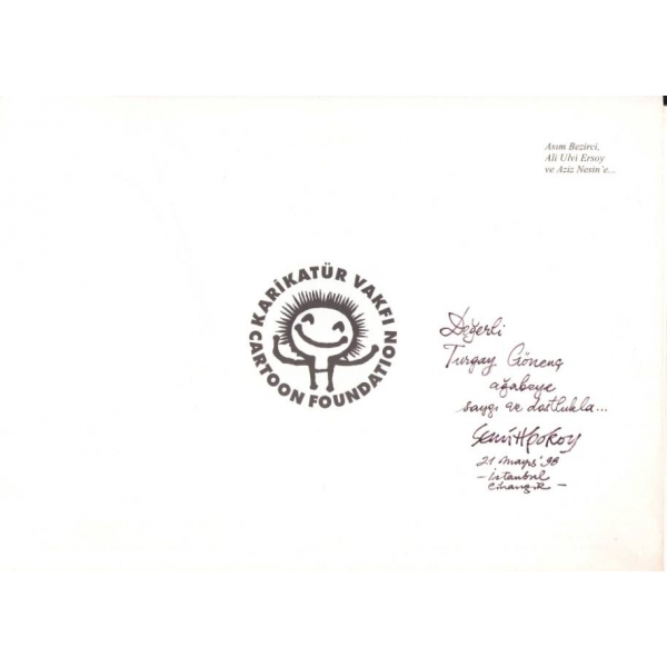 İthaf, "Değerli Turgay Gönenç ağabeye saygı ve dostlukla, Semih Poroy, 21 Mayıs 98, İstanbul Cihangir" şeklindedir. Karikatürist Semih Poroy'un ilk karikatürleri 1975 yılında Akbaba mizah dergisinde yayımlandı. Uzun yıllar boyunca Milliyet Çocuk dergisinde ve Varlık dergisinde çalışmıştır.