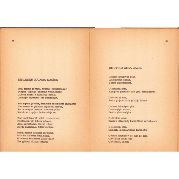 Daktilo metin, Ülkü Tamer imzalıdır. "Kara ayında/ Soyguncuların/ Mahmuzlar şakırdar/ Kara tay/ Nereye böyle atlınla"