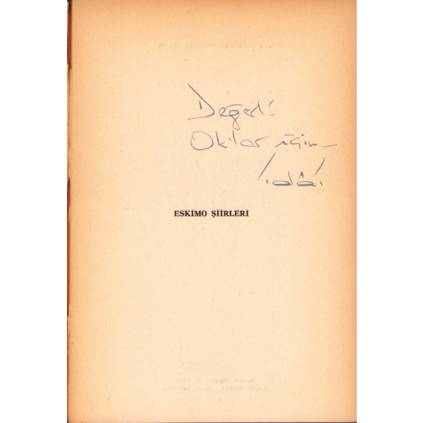 İthaf, "Sayın Arslan Kaynardağ'a kültüre olan değerli katkılarından ötürü duyduğum saygıyla, 3.12.1985" şeklindedir.
