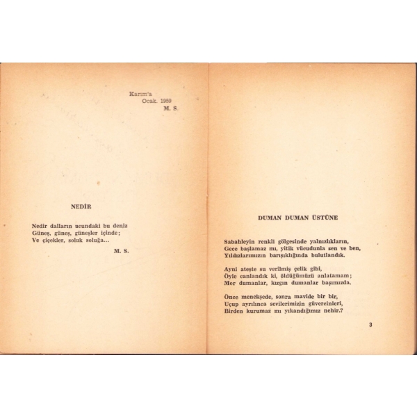 İthaf, "Sevgili Turgay Gönenç'e, -Bu şiirlerim için ne düşüneceksin acaba?, Özlemle 984, Sabahattin Kudret Aksal" şeklindedir. Sabahattin Kudret Aksal [1920-1993] yazar ve şair. İstanbul Üniversitesi Felsefe Bölümü'nü bitirmiştir. İlk şiiri 1961'de Varlık dergisinde yayınlanmıştır. İlk dönemlerinde Garip akımı etkisinde şiirler yazarken daha sonra şiirlerinde İkinci Yeni tesiri görülmüştür.