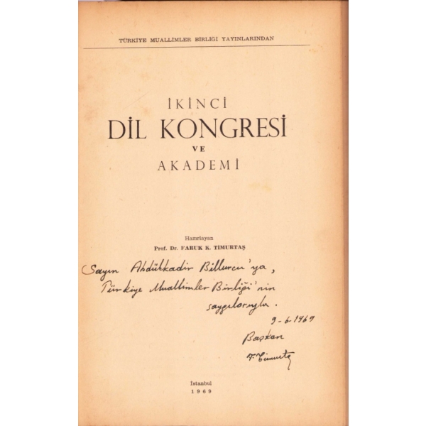 İthaf, "Sayın Abdulkadir Billurcu'ya, Türkiye Muallimler Birliği'nin saygılarıyla. 9-6-1969 Başkan F.Timurtaş" şeklindedir. Dilci, edebiyat tarihçisi, yazar. İlk ve ortaokulu Kilis’te okudu. İstanbul Kabataş Lisesi, İstanbul Üniversitesi Edebiyat Fakültesi Türk Dili ve Edebiyatı Bölümü mezunu. Bitirdiği bölüme öğretim üyesi olarak girdi. Burada “Şeyhî’nin Hüsrev ü Şirin’i” adlı tezle doktorasını verdi, 1959’da “Şeyhî ve Çağdaşlarının Eserleri Üzerine Gramer Araştırmaları” teziyle doçentliğe, “Osmanlıca Gramer” teziyle profesörlüğe yükseldi. Çalışmalarını aynı öğretim kurumunda sürdürerek emekliye ayrıldı. Edirnekapı Sakızağacı Şehitliğinde toprağa verildi. Makalelerini İstanbul, Türk Yurdu, Orta Doğu, Büyük Türkiye, Hisar, Türk Kültürü, Çağrı, Kubbealtı, Akademi, Tercüman dergi ve gazetelerinde yayımladı. Dil ve edebiyat tarihi alanında inceleme ve araştırmalarıyla tanınmıştı. Dil konusunda Türk Dil Kurumunun dil anlayışına ve yeni sözcük üretme çalışmalarına karşı çıkmıştı.