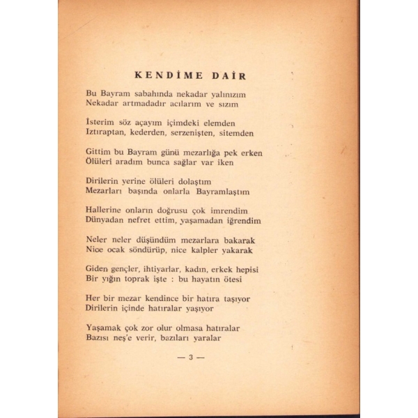 İthaf "Kenan için on beş yıl sonrasına Enis 86" şeklindedir. Enis Batur 28 Haziran 1952'de doğdu. Şair, deneme yazarı, edebiyat eleştirmeni ve yayıncıdır.