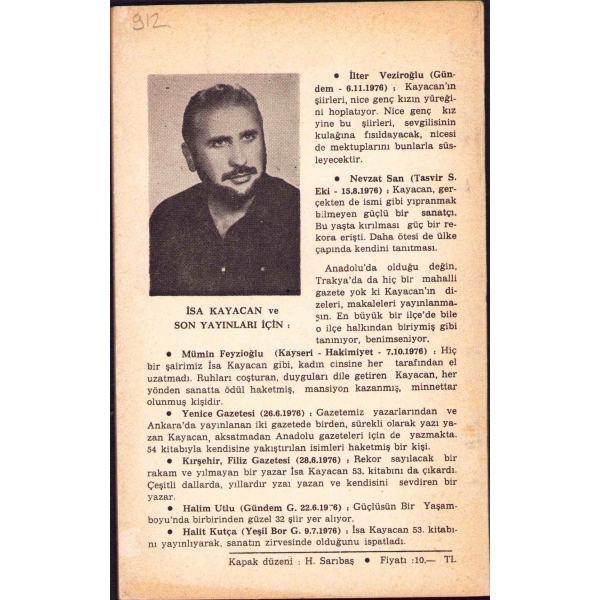 Şair İlhan Büyükcebeci'den Hasan Balın'a, ''Değerli Ağabeyim Hasan Balın'a ''şiir eksilmesindi yüreğimizden...'' umut ve dileğiyle - İlhan Büyükcebeci 17.1.1987'' şeklinde ithaflı ve imzalı.