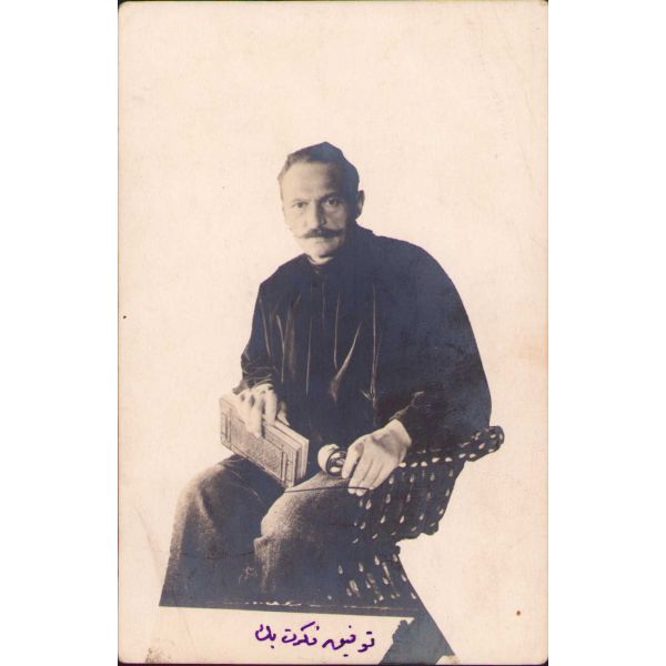 "SEVGİLİ DOKTOR FUAD KAMİL'E HAKİR "AŞİYAN"DAN SELAMLAR VE HÜRMETLER". Tevfik Fikret kartpostalı Galatasaray Sultanisi'nden istifa edip tekrar Aşiyan'da inzivaya çekildiği sıralarda göndermiştir.