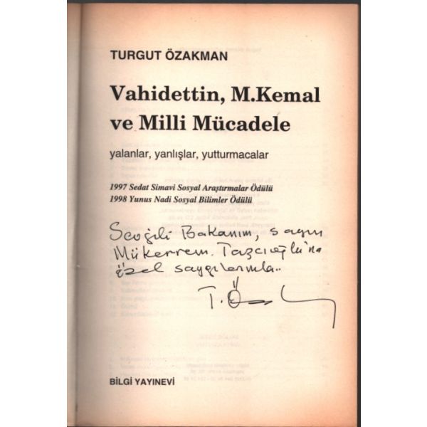 İthaf, "Sevgili Bakanım, Sayın Mükerrem Taşçıoğlu´na özel saygılarımla... T. Özakman" şeklindedir.