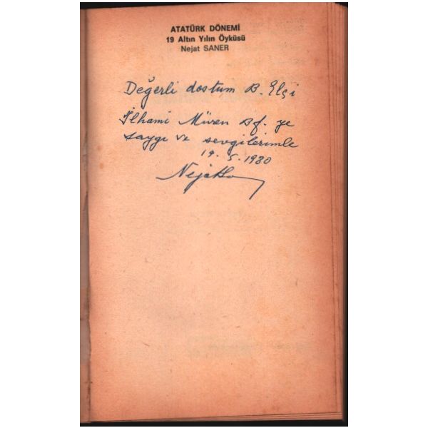 İthaf, "Değerli dostum B. Elçi İlhami Müren Bf.´ye saygı ve sevgilerimle. 19.5.1980 Nejat Saner" şeklindedir.