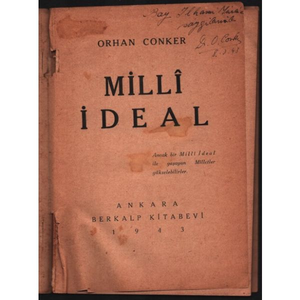 İthaf, "Bay İlhami Müren´e saygılarımla. Orhan Conker 8.3.43" şeklindedir.