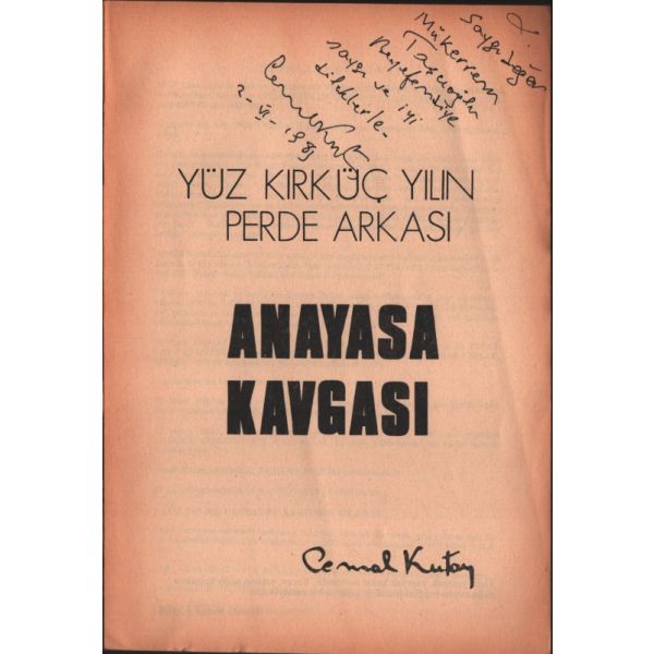 İthaf, "Saygıdeğer Mükerrem Taşcıoğlu Beyefendiye saygı ve iyi dileklerle. Cemal Kutay 2-VI-1983" şeklindedir.