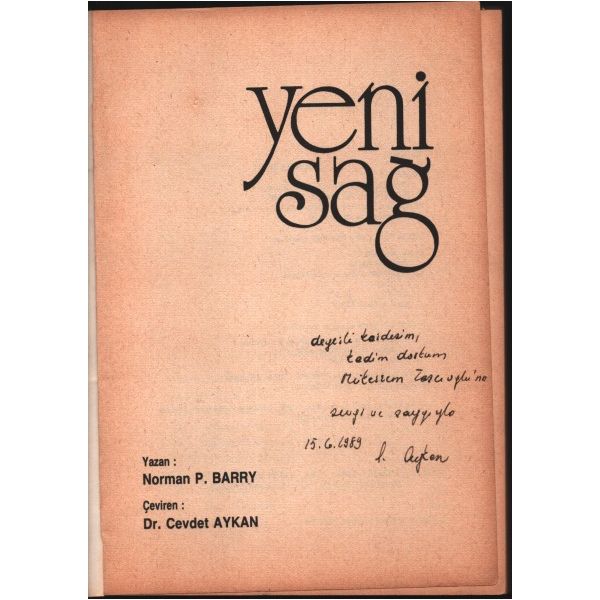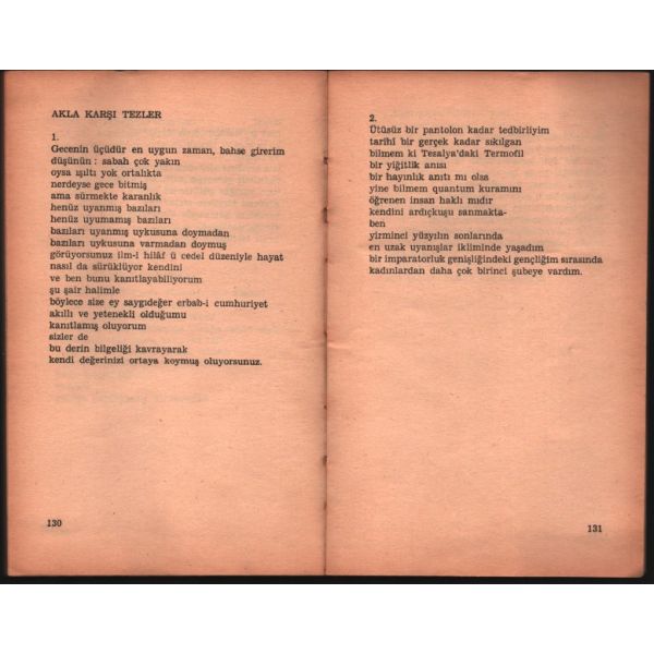 İthaf, "Sevgili kardeşim, kadim dostum Mükerrem Taşçıoğlu´na sevgi ve saygıyla 15.6.1989 C. Ayhan" şeklindedir.