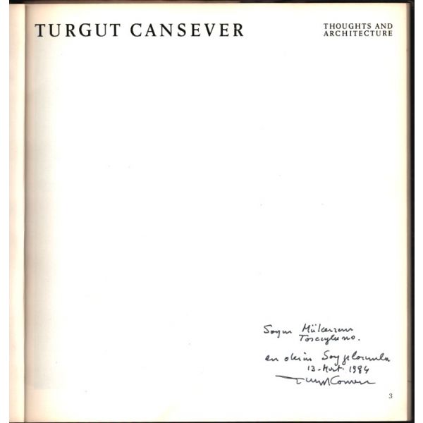 İthaf, "Sayın Mükerrem Taşçıoğlu´na en derin saygılarımla. 13 Mart 1984 Turgut Cansever" şeklindedir.