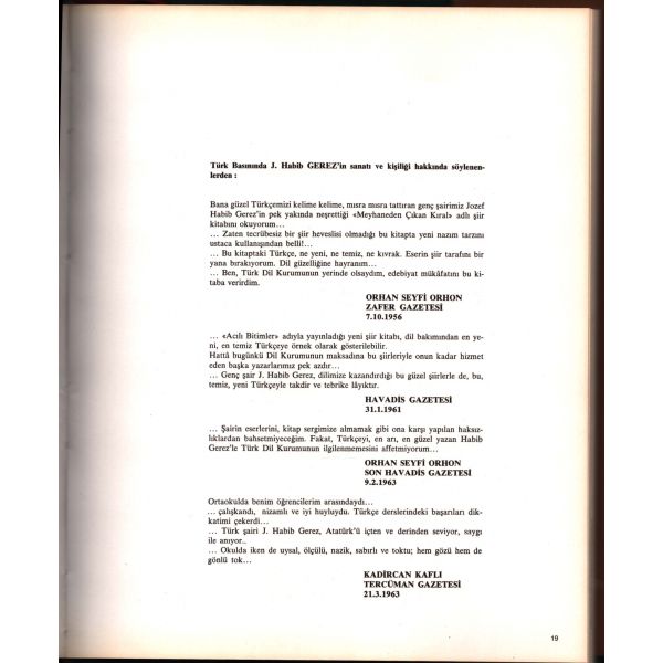 İthaf, "Sayın Kültür Bakanı Mükerrem Taşçıoğlu´na en iyi dileklerimle... Habib Gerez" şeklindedir.