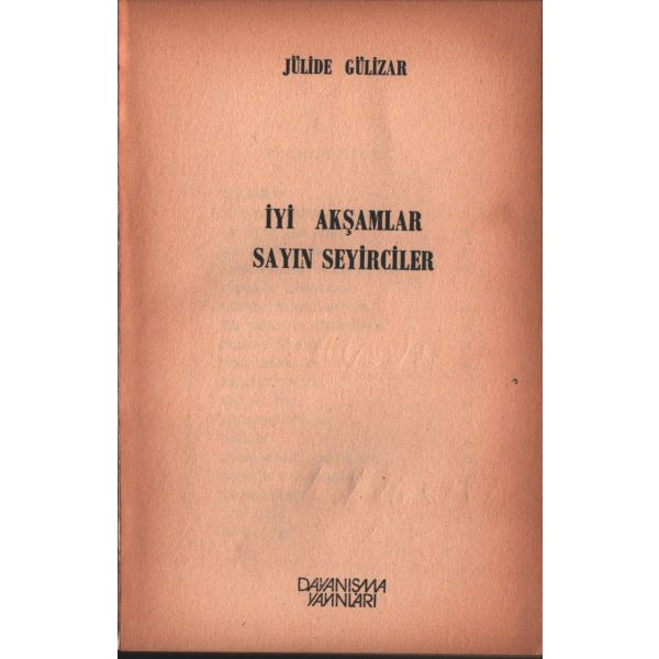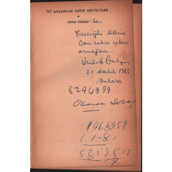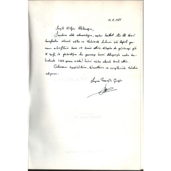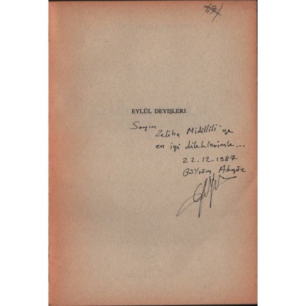 İthaf, "Sayın Zeliha Midilli´ye en iyi dileklerimle... 22.12.1987 Gülsüm Akyüz" şeklindedir.
