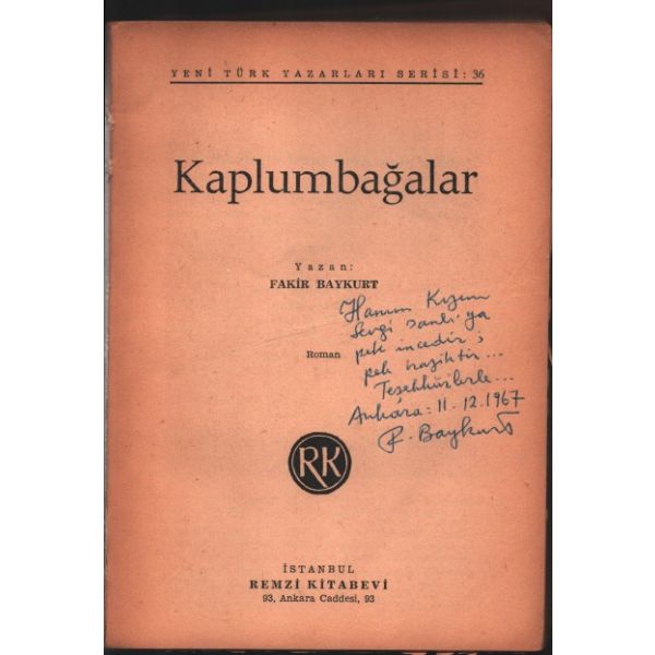 İthaf, "Hanım Kızım Sevgi Sanlı´ya pek incedir; pek naziktir... Teşekkürlerle... Ankara: 11.12.1967 F. Baykurt" şeklindedir.