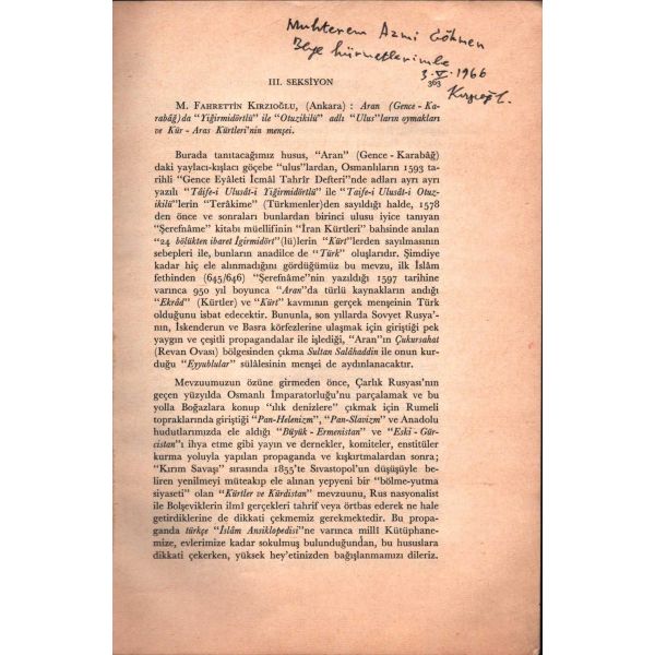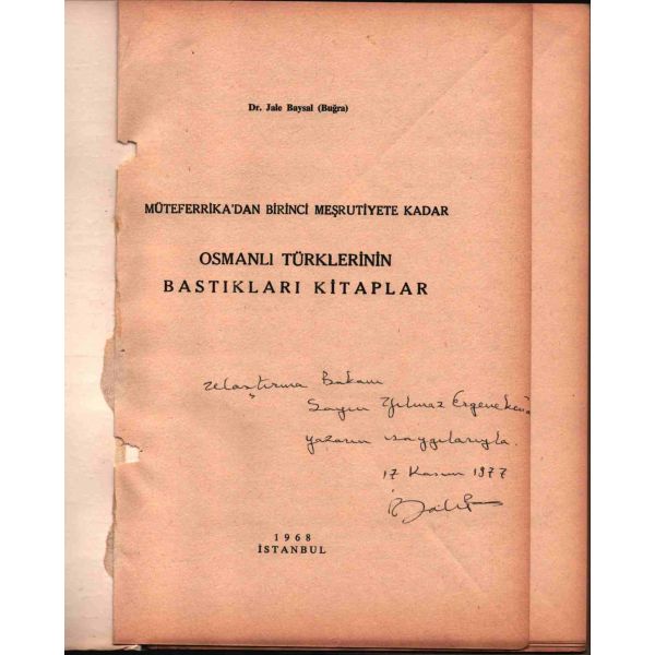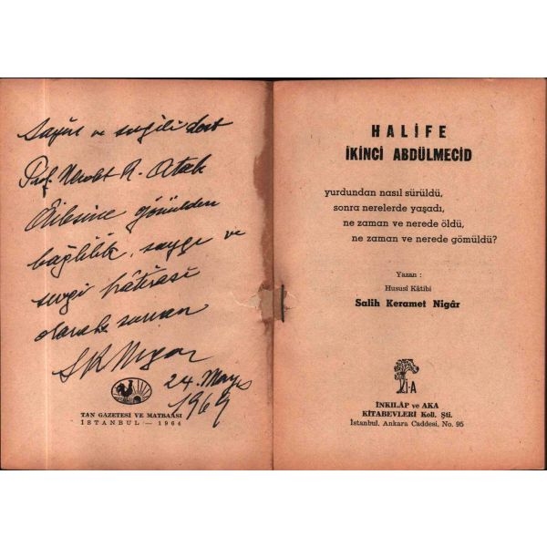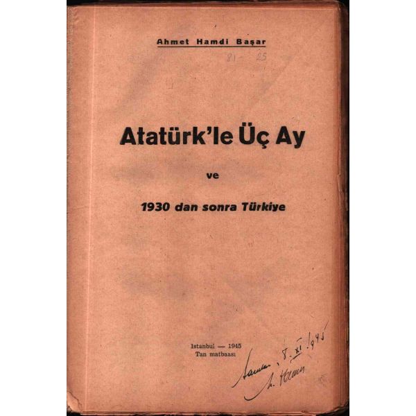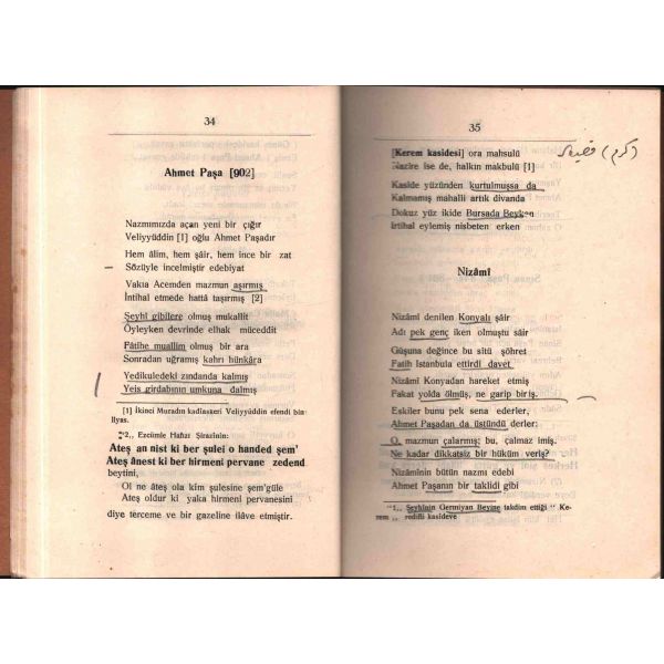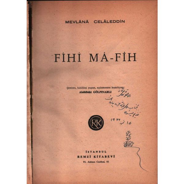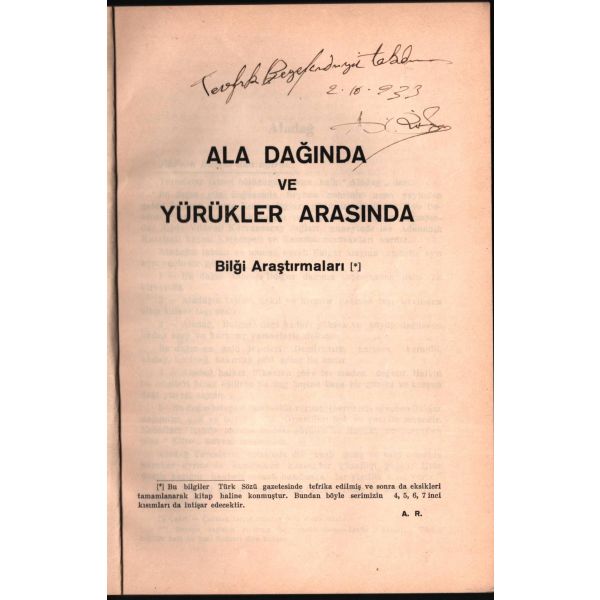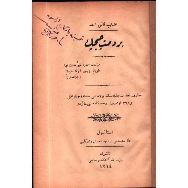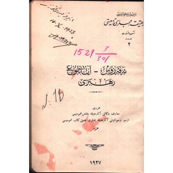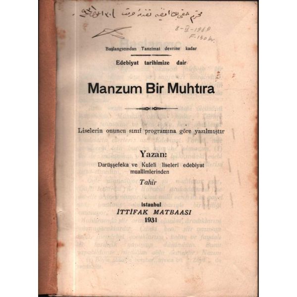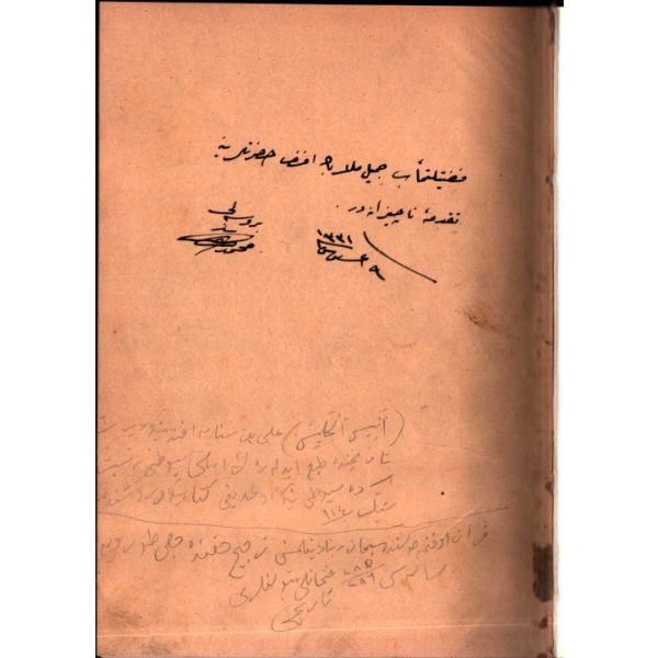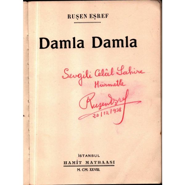 İthaf, "Muhterem Hakkı Beyefendi´ye takdime-i hürmet. 30 Eylül 1931" şeklindedir. Kitabın bazı satırların altı kurşun kalemle çizilmiş, köşelere Osmanlıca kısa notlar alınmıştır.