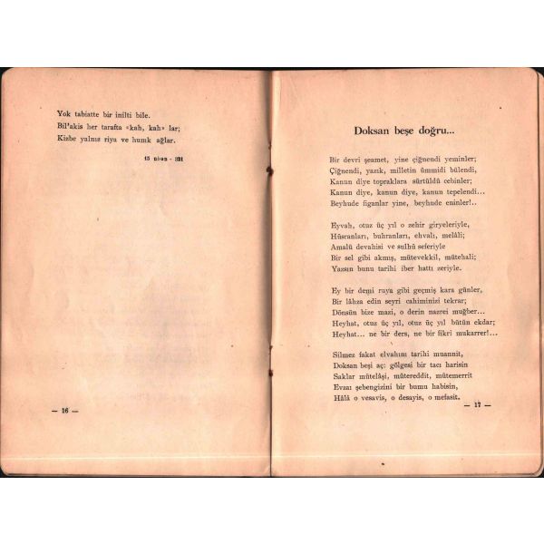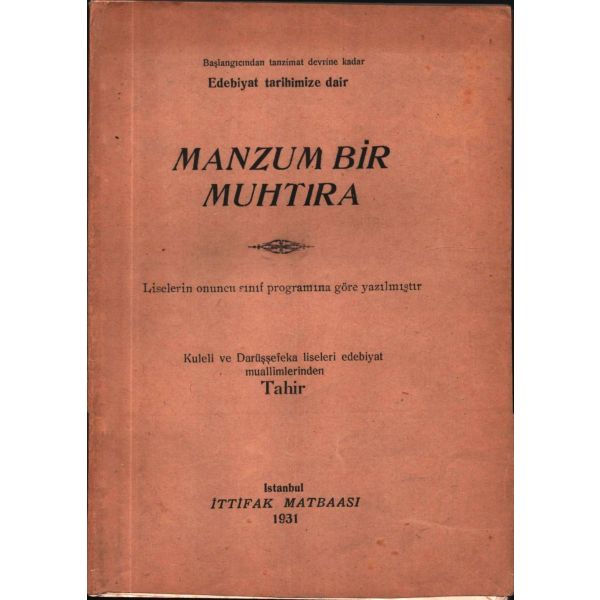 İthaf, "Rahle-i tedrisinde feyz ve ilham aldığım muhterem hocam İbrahim ?'ye derin hürmet ve muhabbetlerimle. Fahri Kemal- 22 Temmuz 1928" şeklindedir.