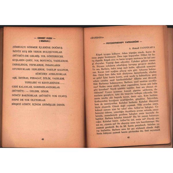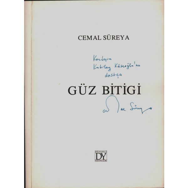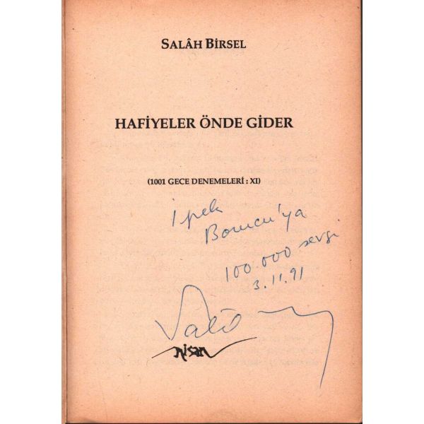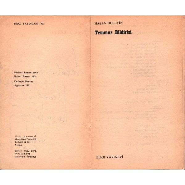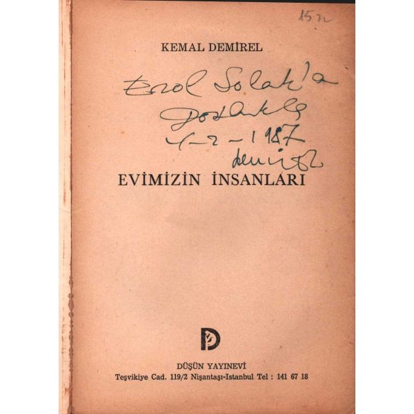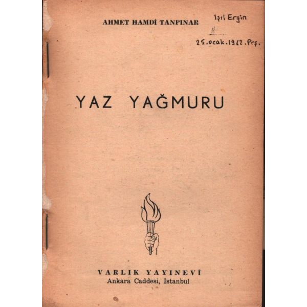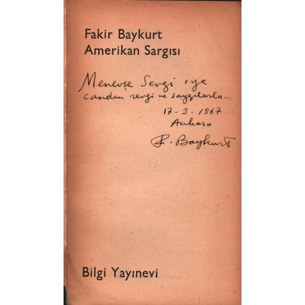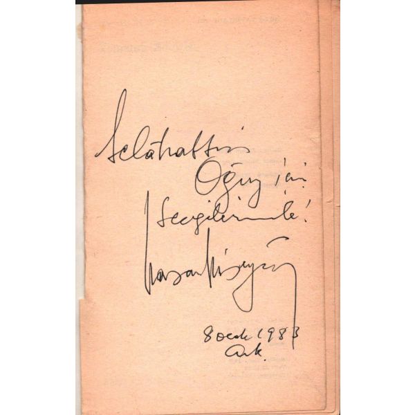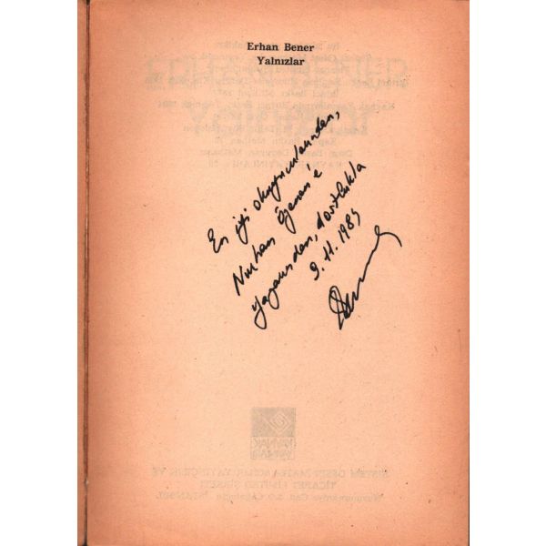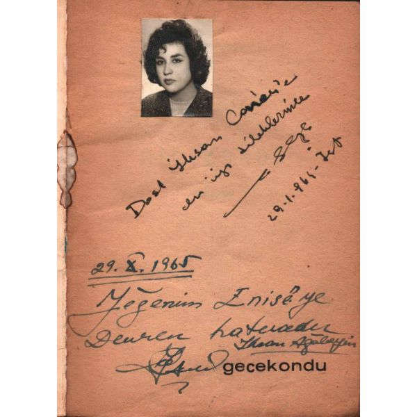 Şennur Sezer´in vesikalık fotoğrafını yapıştırarak kaleme aldığı ithaf, "Dost İhsan Caner´e en iyi dileklerimle. Ş. Sezer 29.1.964 - İst." şeklindedir. Kitap, bir süre sonra İhsan Caner tarafından şu satırlarla yeğenine armağan edilecektir: "29.X.1965 Yeğenim Enise´ye Devren hatıramdır. İhsan Ağabeyin".