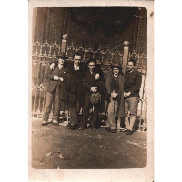 Sabahattin Ali 1928 Kasım’ında önce Berlin’e gitmiş, on beş gün sonra da Potsdam’a taşınmıştır. Müzayedemizdeki bu lot, yazarımızın edebiyatına yön verecek Ivan Turgenyev, Maksim Gorki, Edgar Allan Poe, Guy de Maupassant, Heinrich von Kleist, ETA Hoffmann ve Thomas Mann’ın eserleriyle ilk kez tanıştığı işte bu öğrencilik döneminde, arkadaşlarıyla Sanssouci Sarayı’na yaptıkları gezide çektirdikleri hatıra fotoğrafıdır.