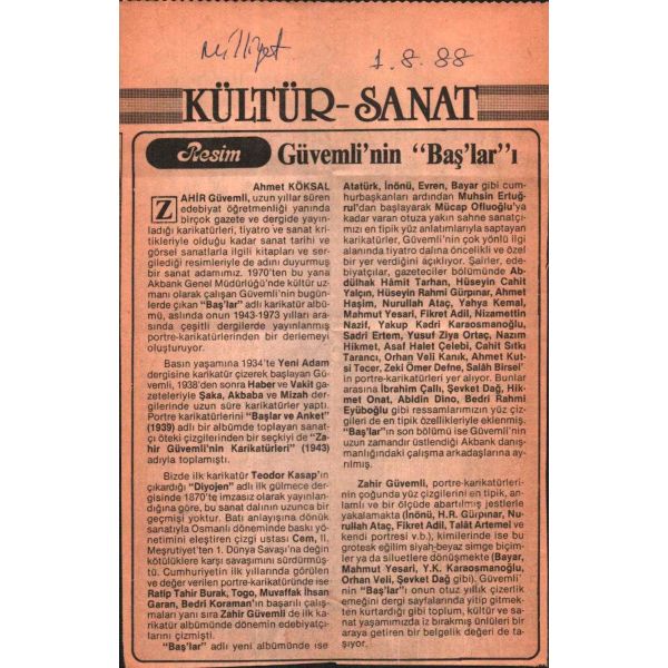 Kitap içerisinde Fahrettin Kerim Gökay´ın kardeşi Avukat Sadettin Kerim Gökay´ın Zahir Güvemli´ye gönderdiği 1988 tarihli ve ıslak imzalı daktilo teşekkür mektubu mevcuttur: "Azizim Zahir Güvemli, Ulu Tanrı kullarından bazılarına çeşitli yönlerde yetenek vermiş. Aziz Güvemlinin de bu mutlu insanlardan birisi olduğunu görerek Ulu Tanrıya bir kere daha şükür ediyorum. (BAŞLAR) isimli karikatür kitabınızda rahmetli ağabeyim Ord, Prof, Fahreddin Kerim Gökay ın da karikatürünü görerek ayrıca pek sevindim. Teşekkürlerimle birlikte daha nice sağlıklı uzun yıllar dileği ile size ve hanımefendiye saygı ve sevgilerimi gönderirirm efendim."