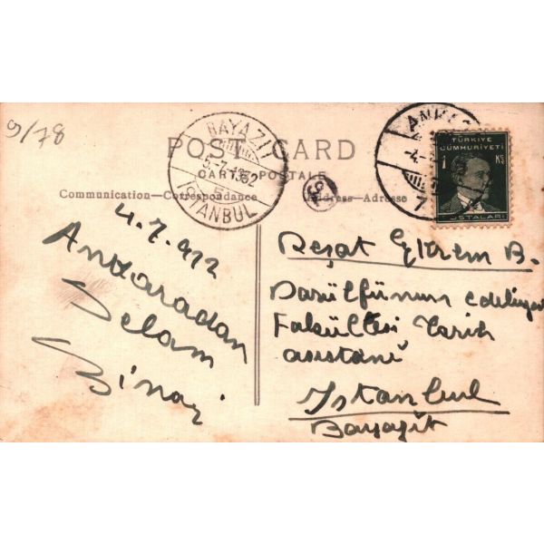 Mektup, "Tektaş [Ağaoğlu] geldi İstanbul´dan. Haberler getirdi çok. Cemal´le [Süreya] Edip [Cansever] (PİDE okunur tersten) imparatorluğu bölüşemiyorlarmış yine. Ha." - "Yahu, bizim K. H. D.´ni [Kınar Hanımın Denizleri] es geçiyorlar gibi geliyor bana. Anlaşılan pek çekmedi dikkati. Neden acaba? Merak ettim. Yoksa ben de Türkiye Cumhuriyetinde olduğumuzu unutuyor muyum nedir, bunları sana yazmakla." ifadelerini içermektedir.