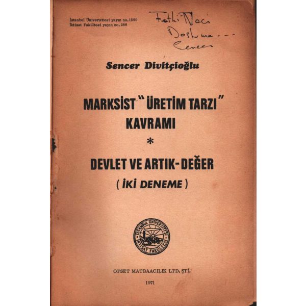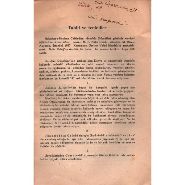 İthaf, "Pek Muhterem ve kıymetli hukukçu, aziz üstad Hikmet Uluca Beyefendiye Payansız Saygılarımla. 9.11.1967 İ. H. Konyalı" şeklindedir. Sayfaları açılmamış.