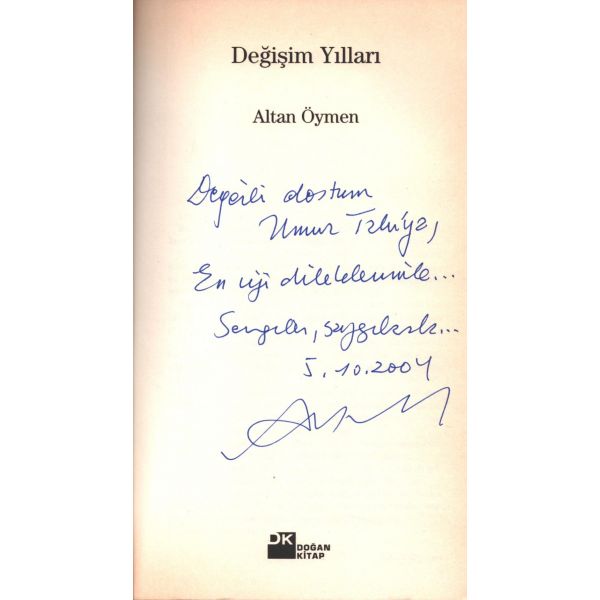 İthaf, "Değerli dostum Umur Talu´ya, en iyi dileklerimle.... Saygılar, sevgiler... 5.10.2004 Altan Öymen" şeklindedir.
