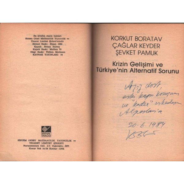İthaf, "Değerli Abdullah Aldemir´e en iyi dileklerimle... Orhan Türkdoğan" şeklindedir.