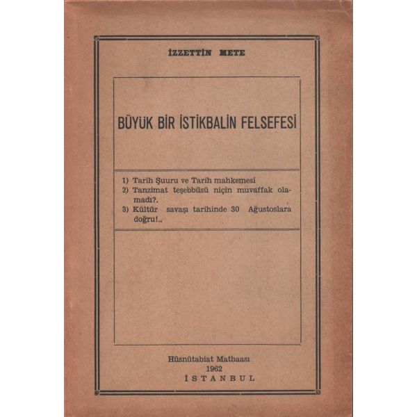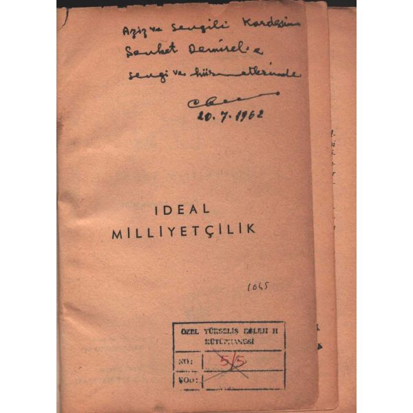 İthaf, "Değerli Kardeşim Rasim ?´a sevgilerimle. İzzettin Mete. 4.3.1964" şeklindedir. Sayfaları açılmamış.