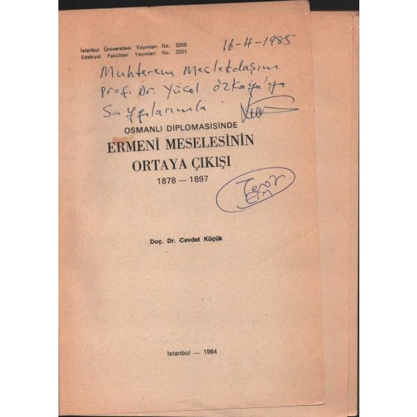 İthaf, "16-11-1985 Muhterem meslekdaşım Prof. Dr. Yücel Özkaya´ya saygılarımla. C. Küçük" şeklindedir.