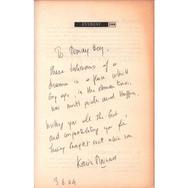 Kenize Mourad´ın "Tumay Bey" için kaleme aldığı 3 Haziran 2004 tarihli İngilizce ithaf okunamamıştır.