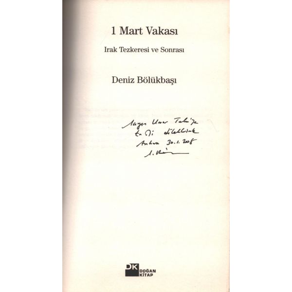 İthaf, "Sayın Umur Talu´ya en iyi dileklerimle. Ankara, 30.1.2008 D. Bölükbaşı" şeklindedir.
