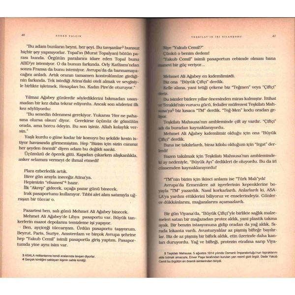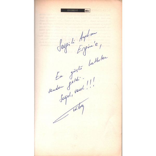 İthaf, "Sevgili Aydın [Doğan?] Ağabey, umarım ´Reis´ gibi bu kitabı da beğenirsiniz... 21.05.´01 Soner Yalçın" şeklindedir.